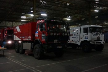 W ogromnych halach i na wielkich otwartych przestrzeniach portowych aż mieniło się w oczach od maszyn. Na pokład transportowców wjechały nie tylko samochody, motocykle, quady i ciężarówki startowe, ale również samochody wsparcia, campery, ciężarówki serwisowe. To wszystko wypakowane po brzegi niezbędnym sprzętem serwisowym, oponami, częściami zamiennymi i wszystkim co niezbędne dla zaplecza organizacyjno-technicznego każdego z zespołów. Słowem setki pojazdów, tysiące ton żelaza i niezliczone narzędzia, śrubki, amortyzatory, opony, półośki, sprzęgła…