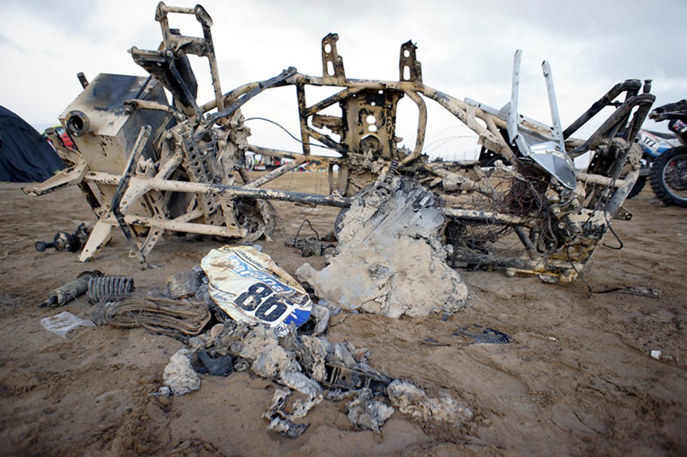 W ostatnich dniach kilku kierowców na własnej skórze odczuło, że Dakar to nie przelewki. Najpierw o śmiertelne niebezpieczeństwo otarł się Marcos Patronelli. Dwukrotny zwycięzca rajdu stracił panowanie nad quadem, który spadł z 400-metrowej skarpy. Argentyńczyk w ostatniej chwili zdołał zeskoczyć. W środę kostucha zajrzała w oczy byłemu narciarzowi Guerlainowi Chicherit. Zawodnik, który w swojej karierze ma na koncie salto w tył wykonane samochodem rajdowym, prowadził na pierwszym punkcie pomiaru czasu, kiedy zapalił się jego buggy. Chwilę po tym, jak kierowca z pilotem wyskoczyli z auta, to wybuchło i doszczętnie spłonęło… Zawodnikom na szczęście włos z głowy nie spadł.