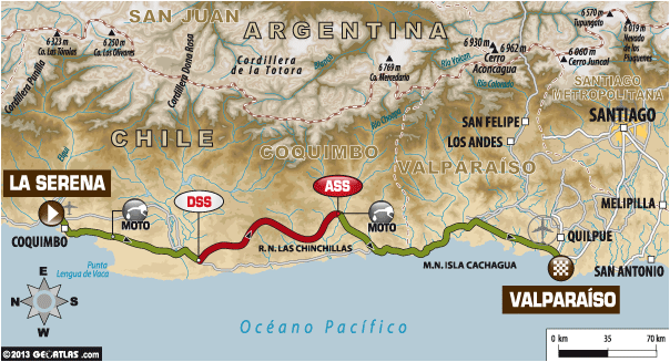 Organizatorzy tym razem nie straszą wydmami, fesz feszem, ostrymi jak brzytwa kamieniami ani dystansem – bo żadnego z tych elementów nie znajdziemy na trasie 13. etapu. Statystyki są jednak bezlitosne i jasno pokazują, że co roku, na ostatnim odcinku specjalnym przygodę z Dakarem przedwcześnie kończy przynajmniej jedna załoga. Najlepszym przyjacielem kierowców w drodze z La Sereny do Valparaiso będzie więc czujność i roztropność.