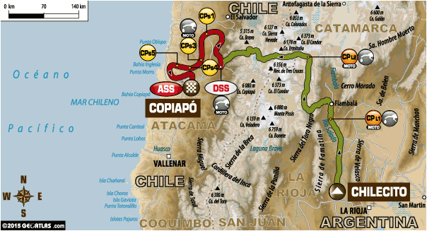 Już na terytorium Chile rozpocznie się liczący 315 km odcinek specjalny. Na początek zawodników czeka rozgrzewka w postaci jazdy po dawnych drogach górniczych. Po 200 kilometrach twarde, andyjskie podłoże zmieni się w sypki piach pustyni Atakama, a ostatnie 40 km to już jazda po olbrzymich wydmach okolic Copiapo, gdzie zlokalizowana będzie meta i biwak. Tę część większość zawodników pokona nocą. Po raz kolejny na próbę zostanie więc wystawiona wytrzymałość i sprawność fizyczna rajdowców.