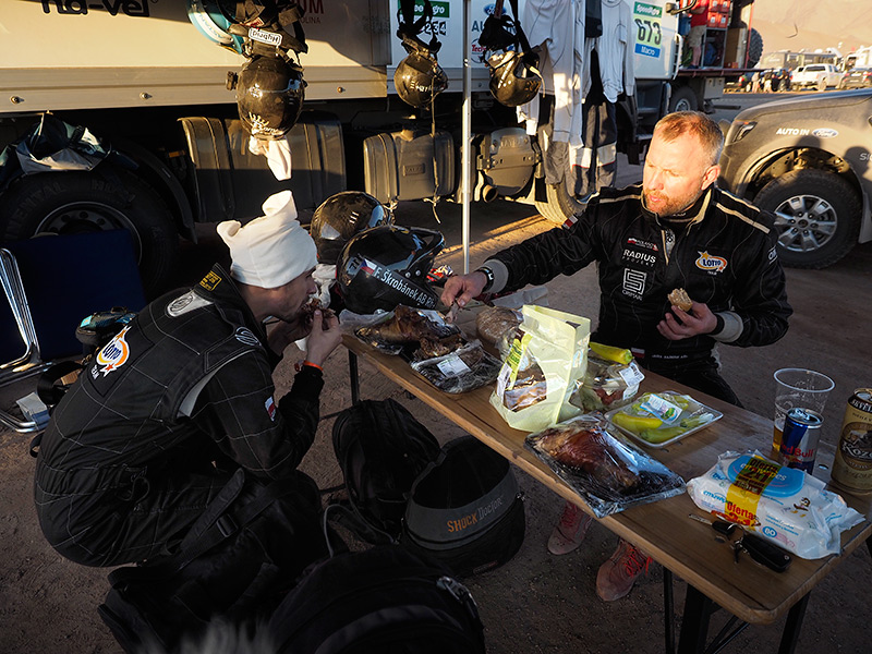 Kiedy Jarosław Kazberuk poszedł na codzienny masaż, Robin Szustkowski udał się do namiotu medycznego, gdzie został na jakiś czas podłączony do kroplówki. Rano znów wsiądzie do czarno-czerwonej Tatry i razem ze swoim mentorem oraz mechanikiem Filipem Skrobankiem, ruszą w kierunku Iquique. To z kolei oznacza, że wielkimi krokami zbliża się pierwszy w historii etap maratoński dla ciężarówek.