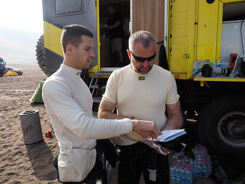 Biwak, na który dotarli rajdowcy okazał się bardzo spartański. – Na miejscu jest tylko woda i toaleta. Lekarze jeszcze nie dojechali, bo mają problemy z dotarciem. Robin od razu poszedł spać. Mamy nadzieję, że rano będzie czuł się już lepiej – przekazał Jarek Kazberuk przez telefon satelitarny – jedyne źródło łączności na środku Atakamy.