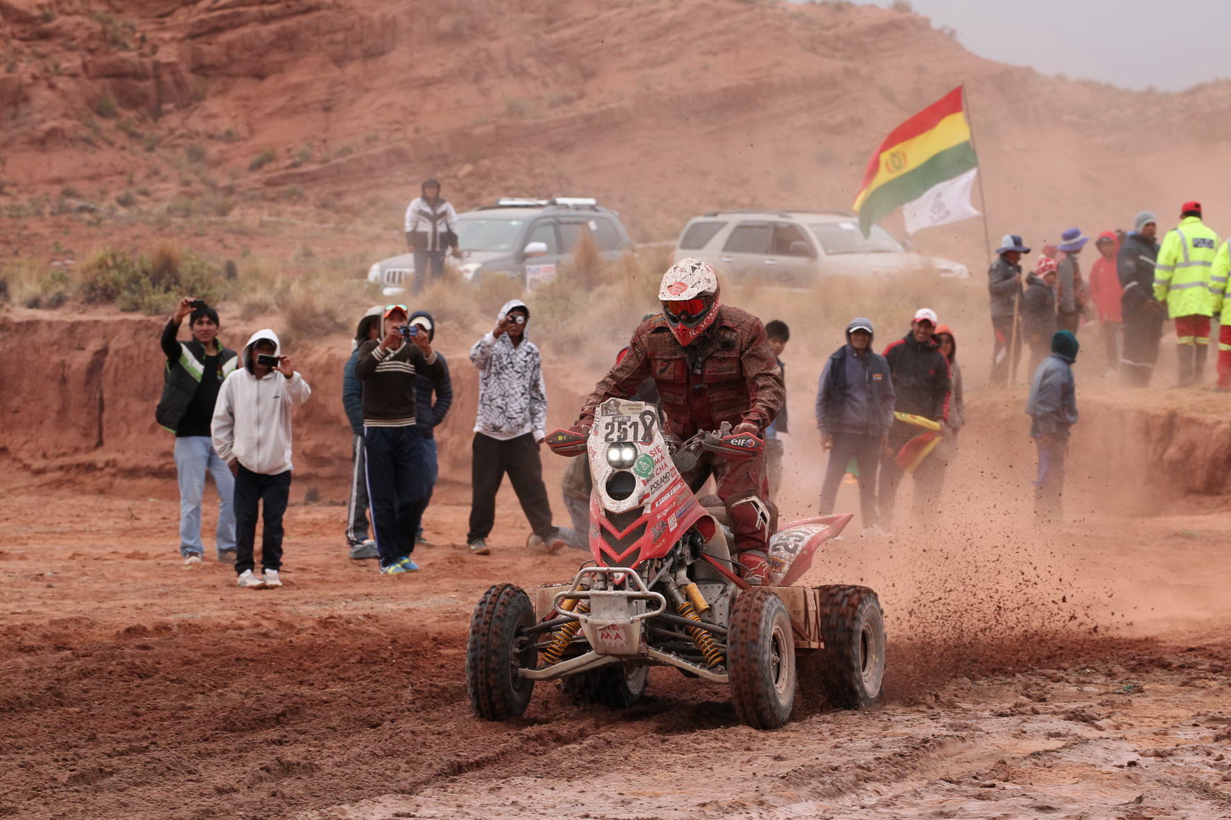 Jakub Przygoński: – Jesteśmy teraz w Boliwii na wysokości 4000 m n.p.m. Dziś była niesamowita liczba kibiców, nigdy się z czymś takim nie spotkałem. Ponadto na trasie spotkałem lamy i strusia. Padał deszcz, było bardzo ślisko, wiele kałuż, przez które czasem trzeba było skakać. Musieliśmy uważać. Udało mi się wszystko dobrze przejechać. Jesteśmy po pierwszym odcinku maratońskim, jutro drugi. Na szczęście dziś nic się nie stało z motocyklem, więc nie trzeba nic przy nim naprawiać. Na odcinkach maratońskich nie ma serwisu, żadnej pomocy mechaników. Jesteśmy sami i mamy do dyspozycji tylko te części, które wcześniej zabraliśmy ze sobą. Dobrze się czuję na takich odcinkach, bo jestem w stanie sam naprawić motocykl, jeśli tylko mam właściwe części.