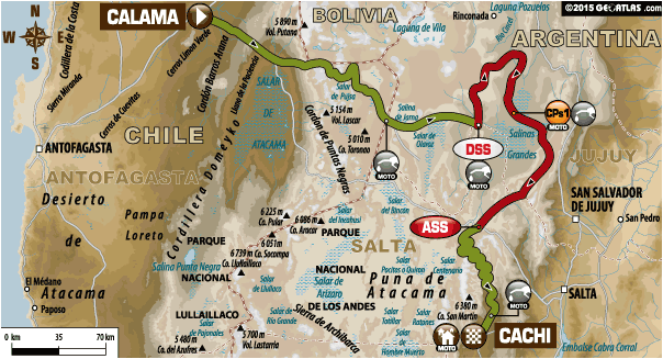 Prawdopodobnie już po pierwszym rzucie oka w roadbook i plan trasy na środę, zawodnikom nieco zrzedły miny. Szczególnie motocyklistom i quadowcom. Po niemal 400 km dojazdówki przez Andy, odcinek specjalny rozpocznie się już po argentyńskiej stronie na… Salinas Grandes, czyli trochę mniejszej wersji Salar de Uyuni.