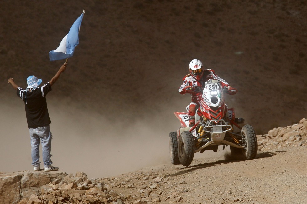 Rafał Sonik: – W roadbooku na 193. kilometrze nie było zaznaczonej wielkiej dziury. Takiej, przy której powinny być dwa, a nawet trzy wykrzykniki. Wpadłem w nią i wyleciałem w powietrze. Trzymając cały czas kierownicę, aby zapobiec zrolowaniu quada, wpadłem na skały. Zostałem po nich przeciągnięty bokiem i nogami, które są całe posiniaczone i pokrwawione. Jestem z siebie dumny i absolutnie szczęśliwy, że wyszedłem z tego cało.